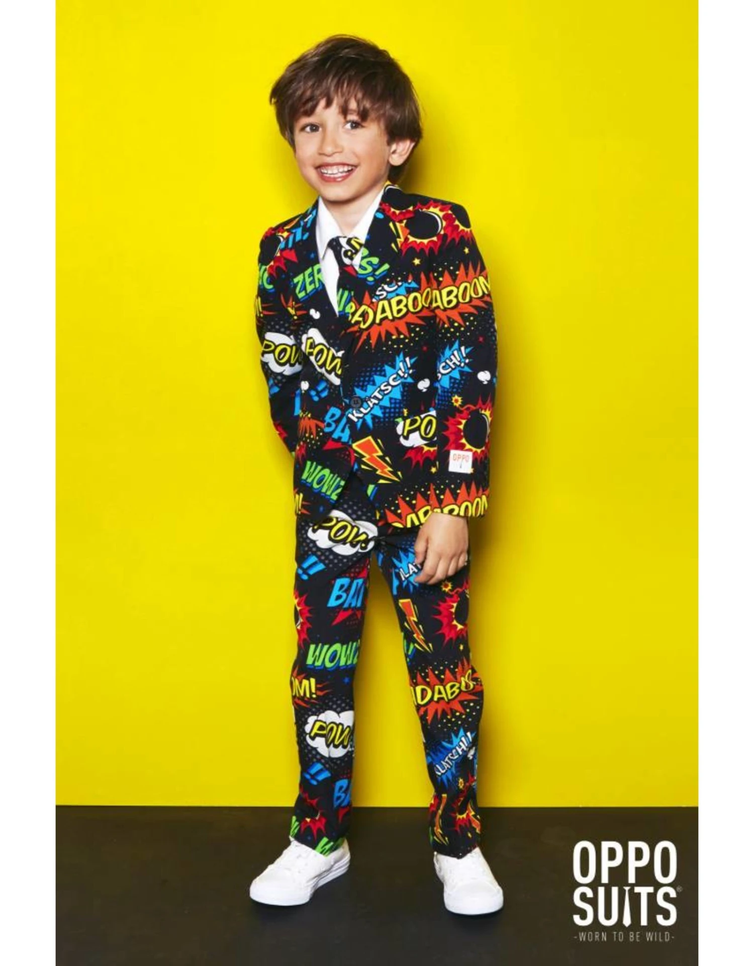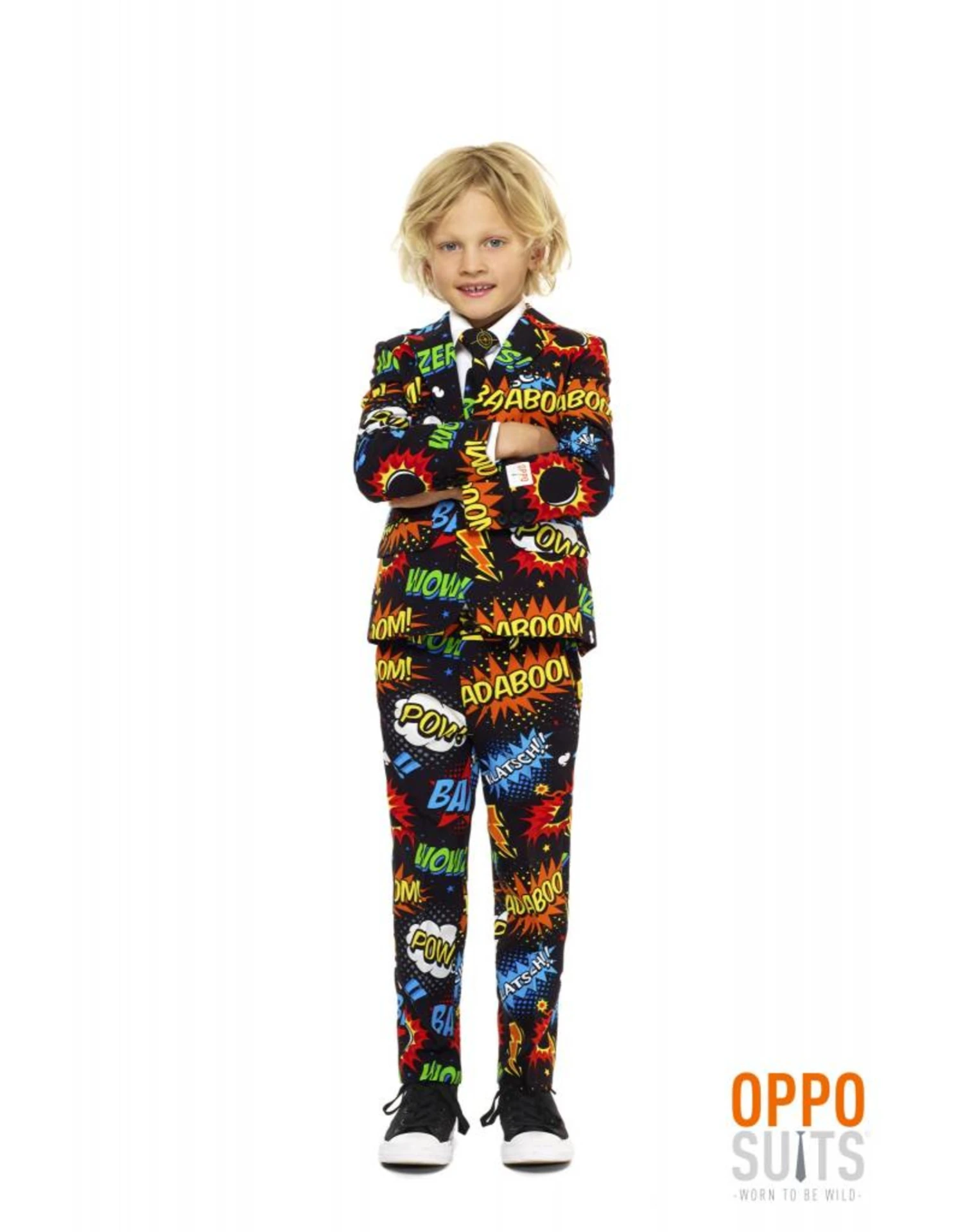 Badaboom badabeng! Tegenwoordig gebruiken kinderen alleen nog maar tablets en telefoons maar wij bij OppoSuits weten dat stripboeken nooit uit de mode zullen raken. Zelfs jonge kinderen zullen dit toffe Badaboom jongenspak willen dragen!