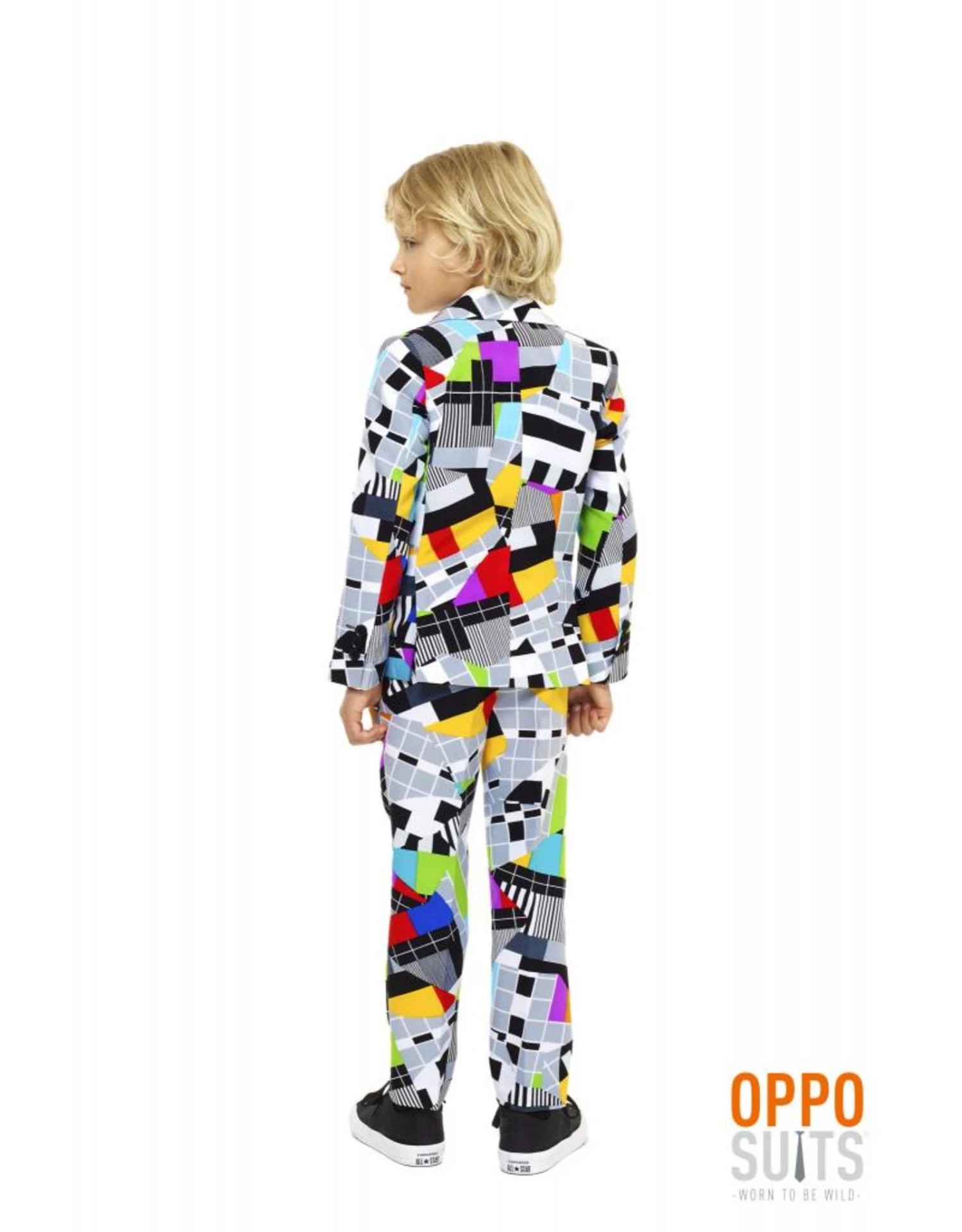 Het kan knap lastig zijn om jonge jongens zich formeel te laten kleden. Maar dit vrolijk gekleurde Testival pak aan de man te krijgen is simpel als ABC. De retro print zal van iedere jongen een blikvanger maken!