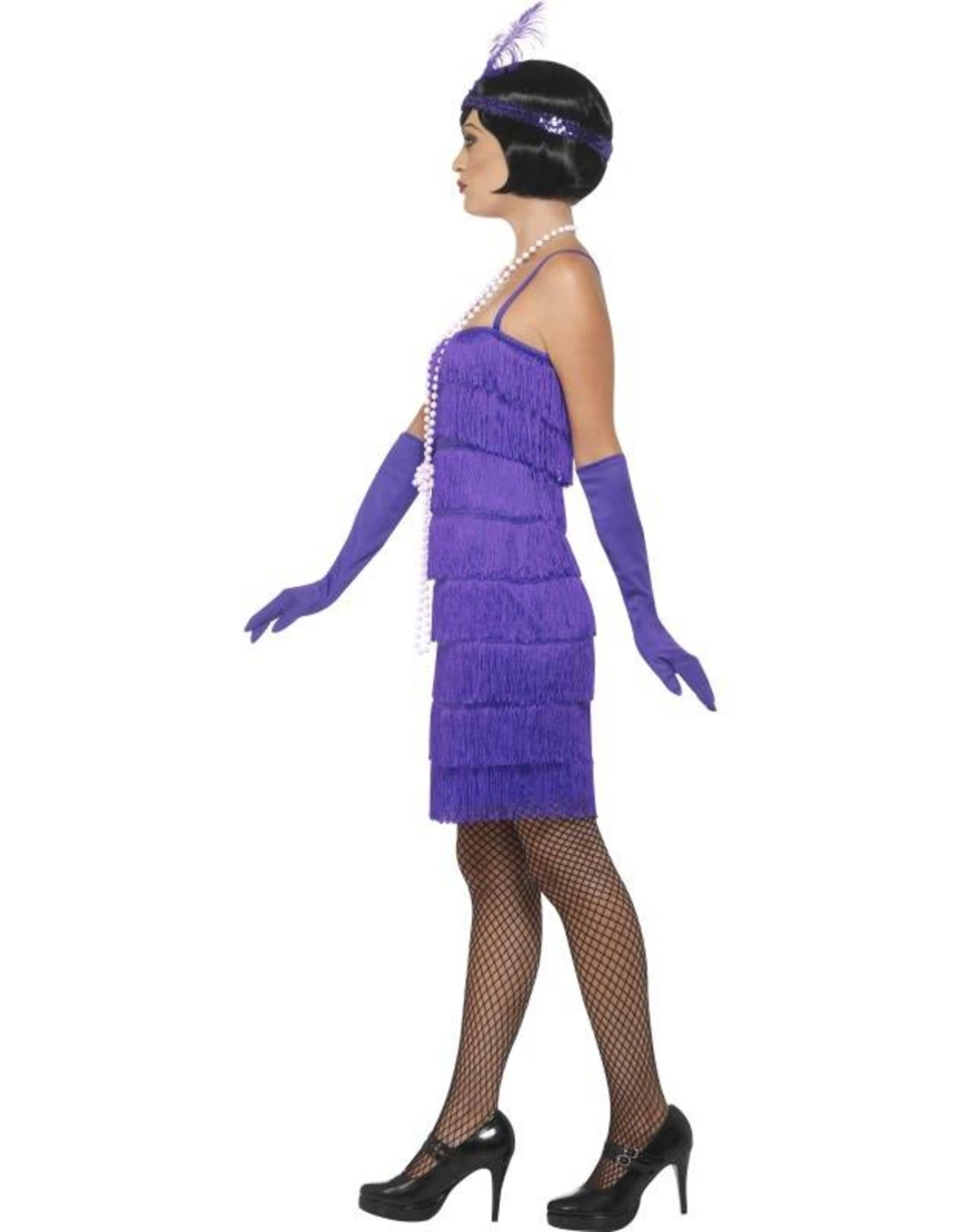 Dit kostuum bestaat uit een korte jurk, haarband en handschoenen.