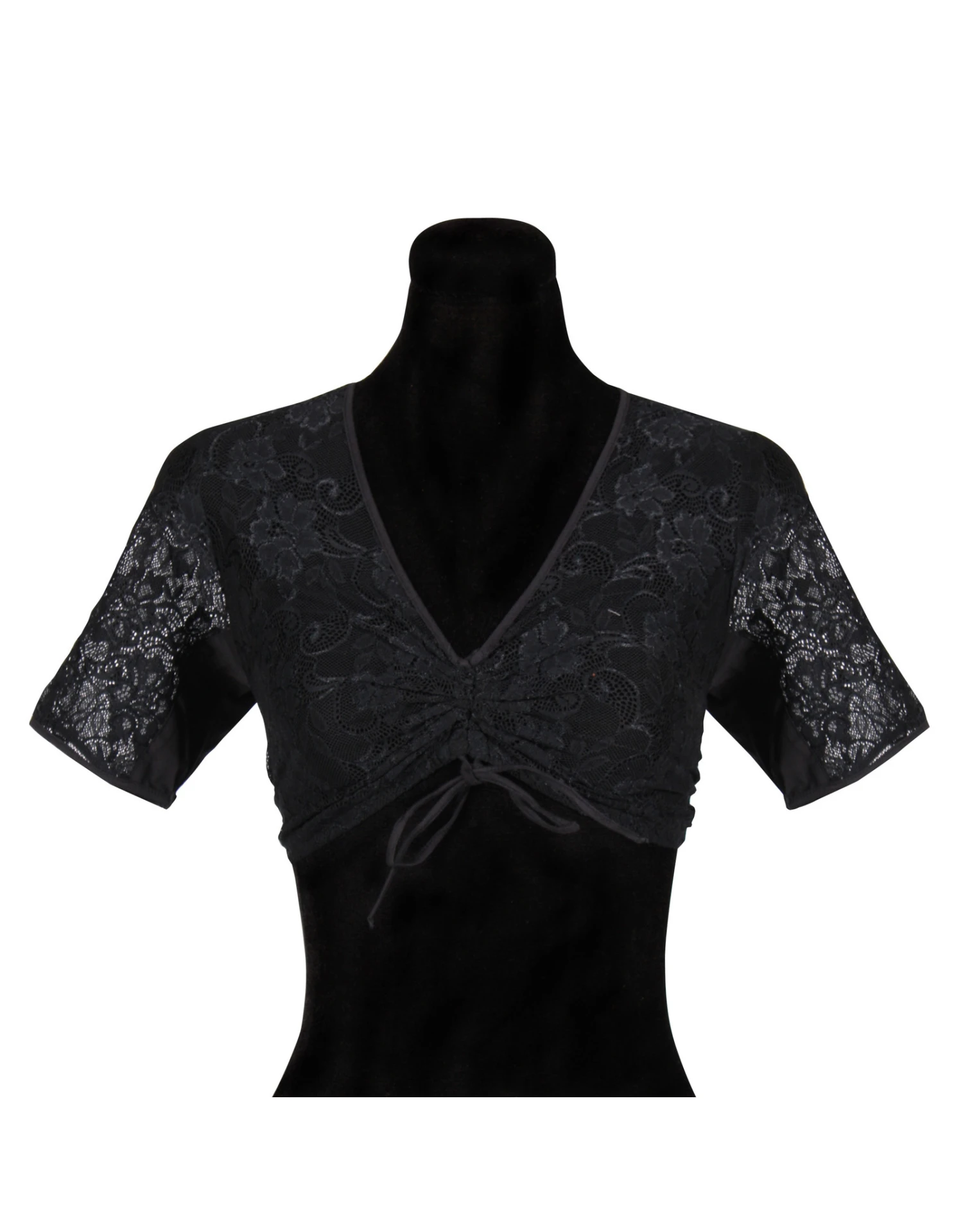 Deze prachtige dirndlblouse heeft een doorzichtig kanten voorpand en mouwen.