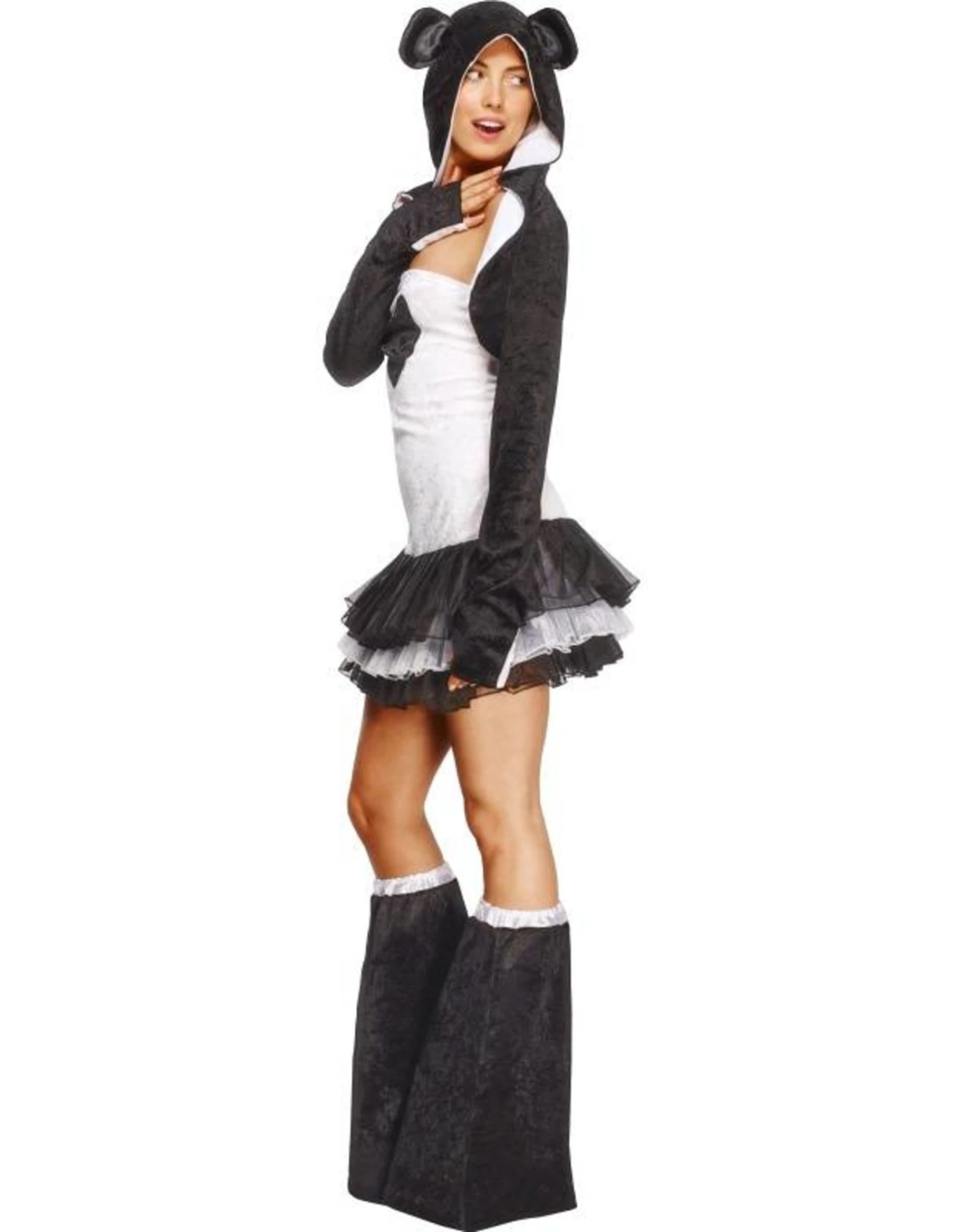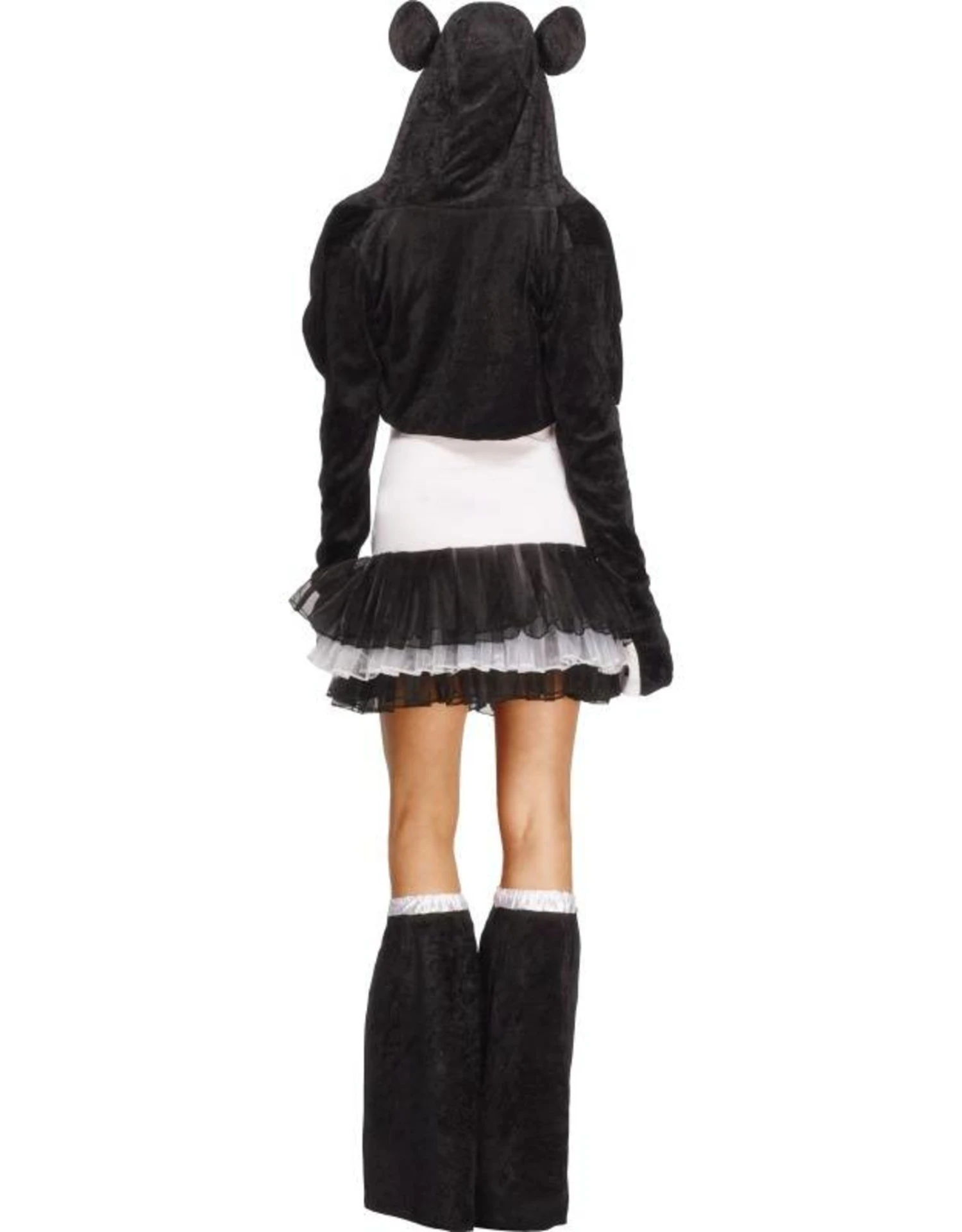 Dit kostuum bestaat uit een zwart/witte Tutu jurk met afneembare bandjes, jasje en Beenkappen.