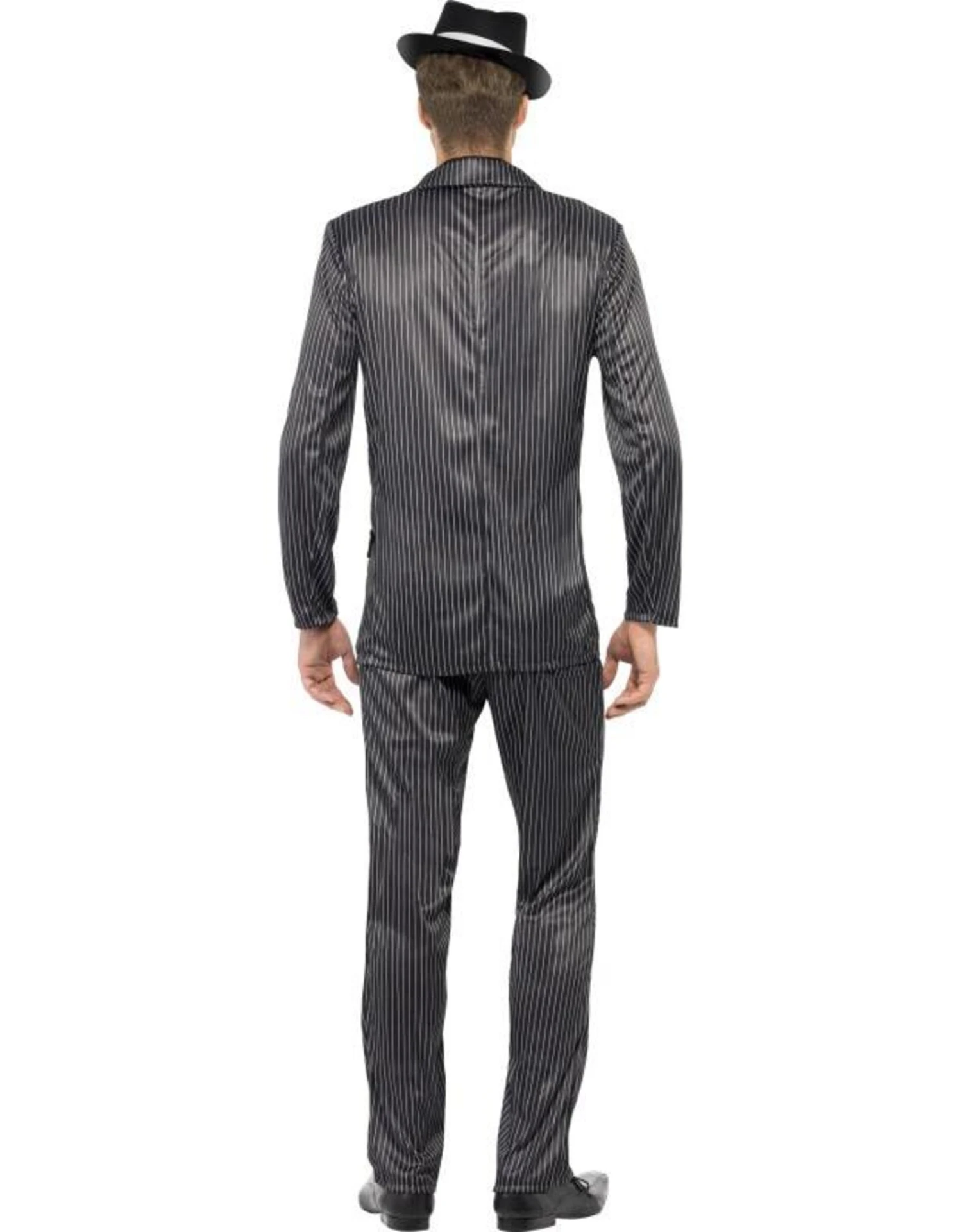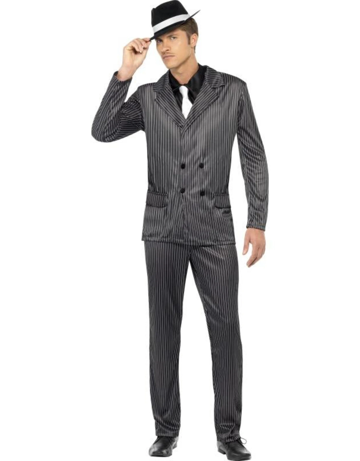 Dit kostuum bestaat uit een gestreepte jas en broek, Shirt met stropdas.