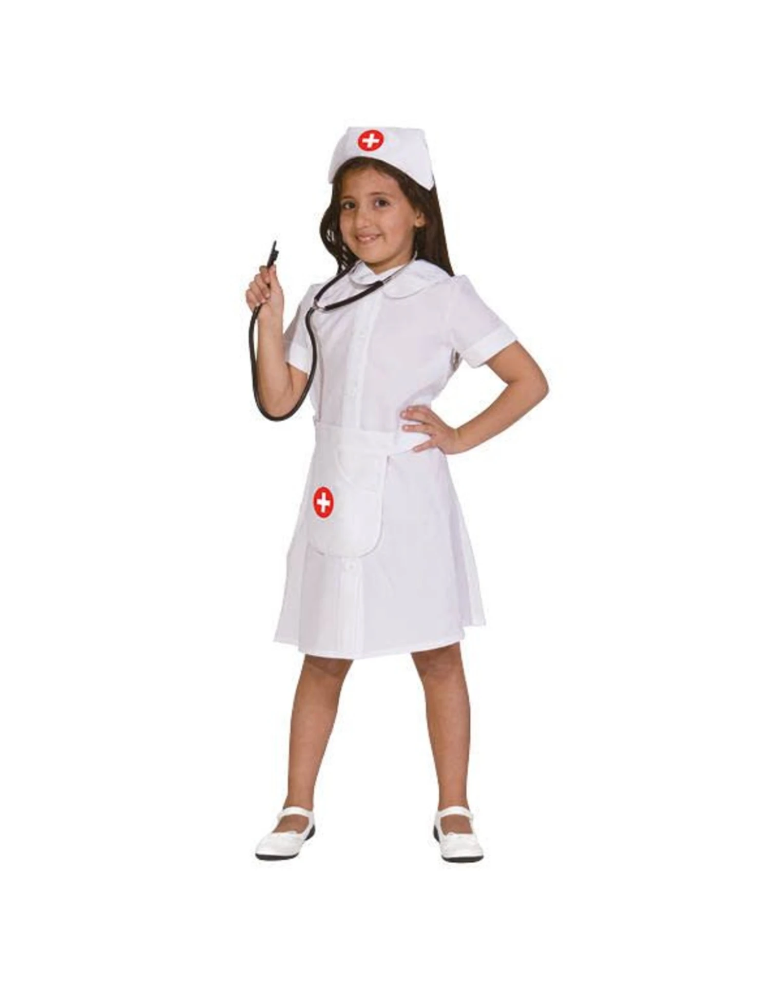 Dit kostuum bestaat uit een jurk en verpleegsterskapje
