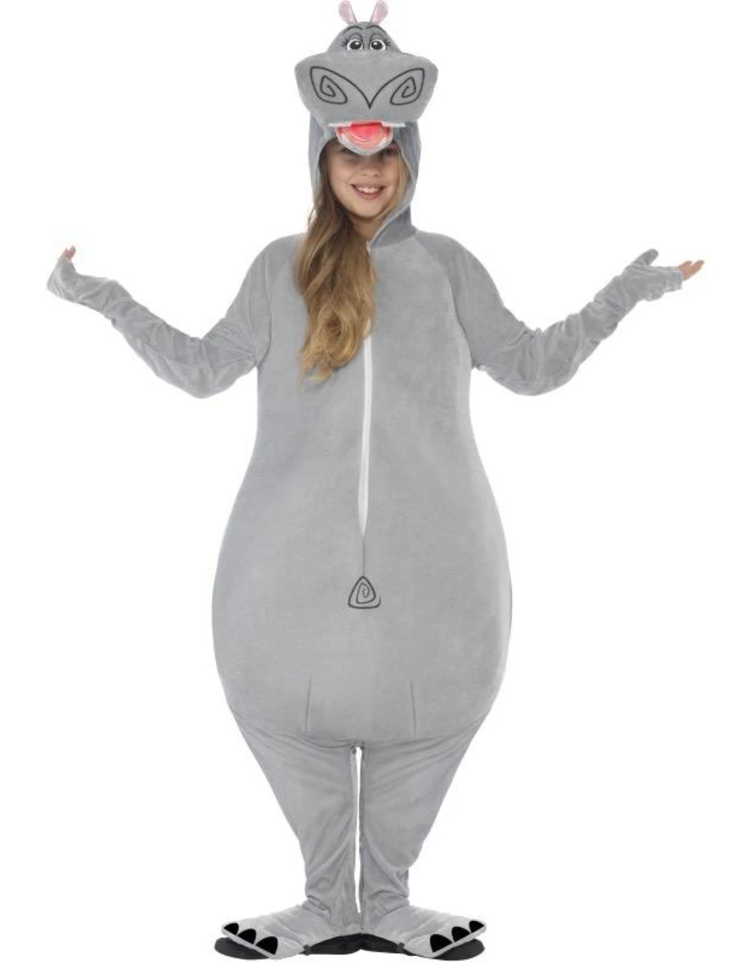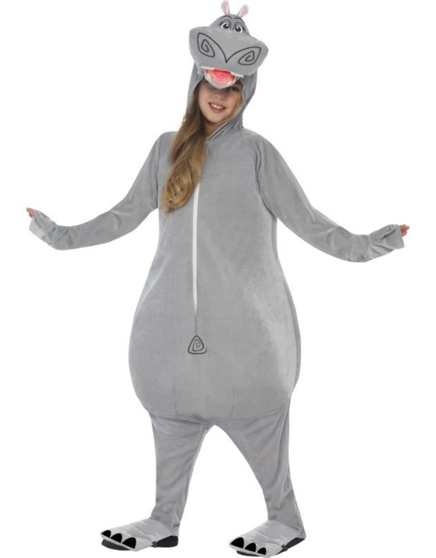 Dit kostuum bestaat uit een jumpsuit met capuchon.