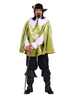 Dit kostuum bestaat uit een jurk, jas en hoepelrok.