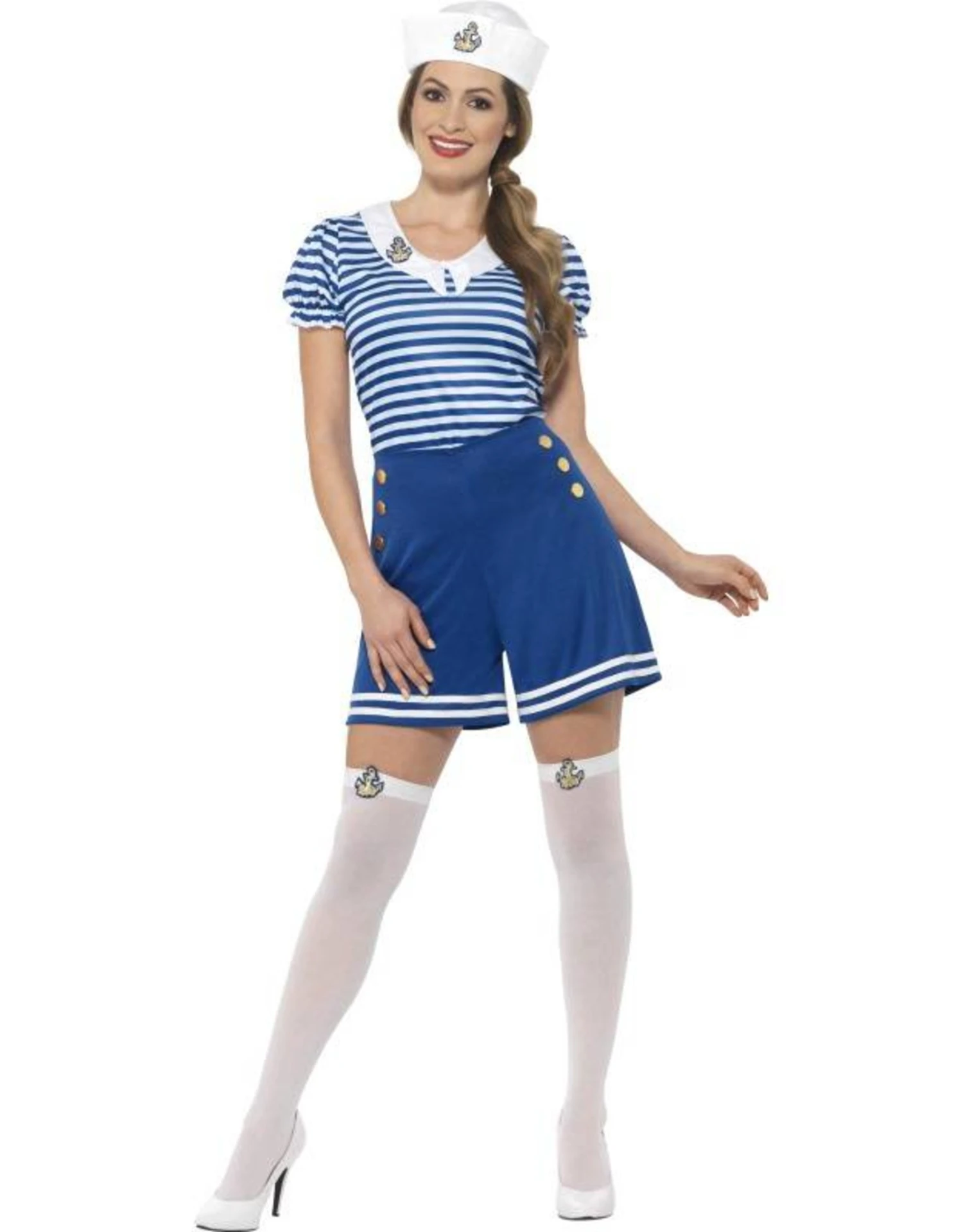 Dit kostuum bestaat uit een shirt, korte broek, kniekousen en hoedje.