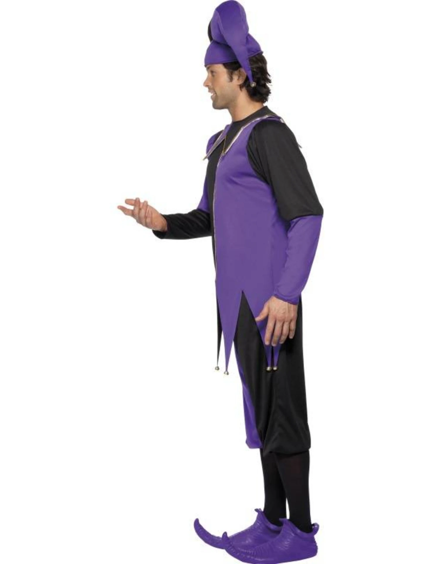 Dit kostuum bestaat uit een tuniek vaste kraag, broek en muts met belletjes.