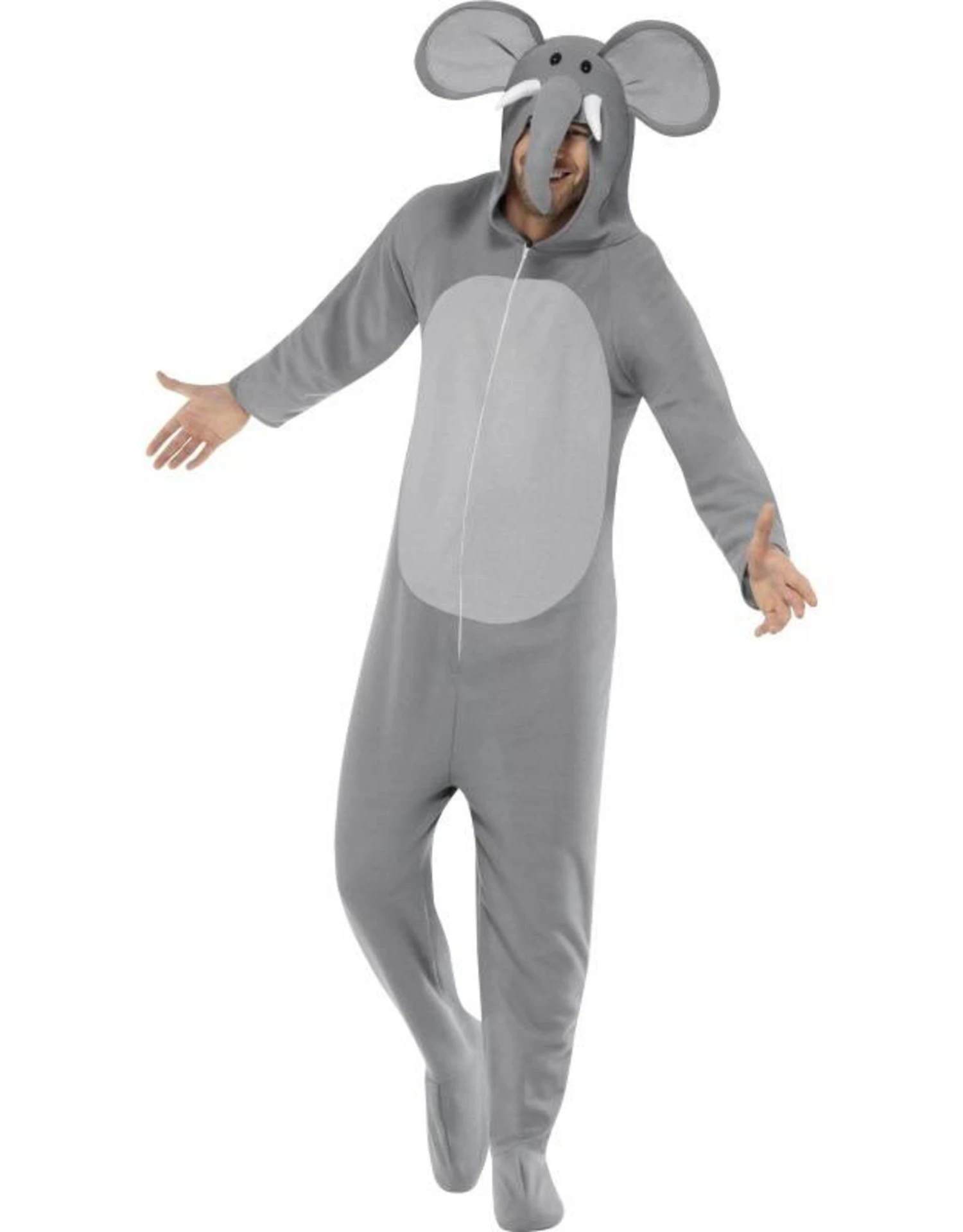 Dit kostuum bestaat uit een jumpsuit met capuchon.