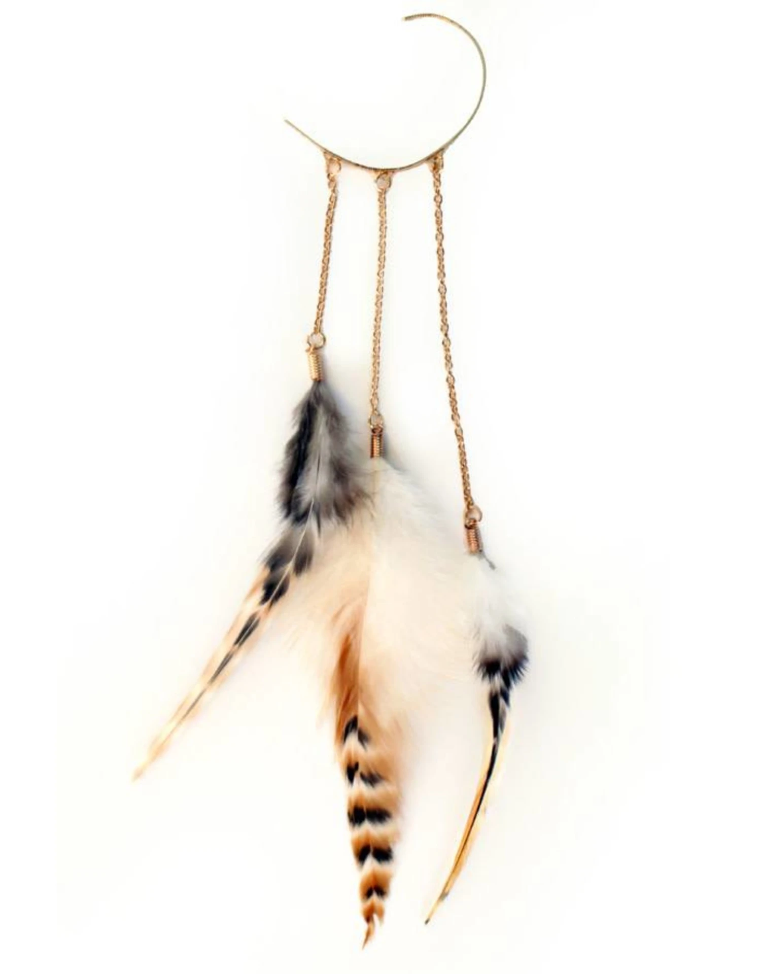 Oorhanger/boogje met veren naturel