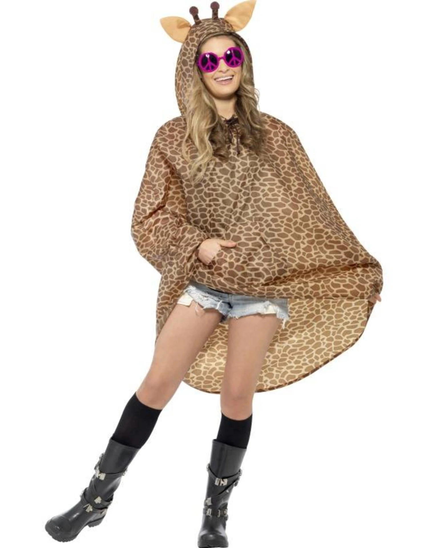 Poncho met girafprint en capuchon.