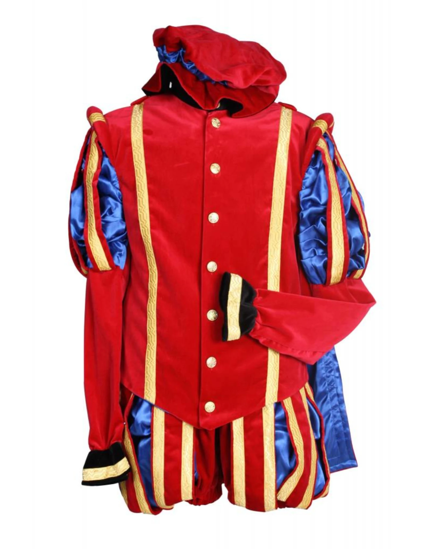 Dit kostuum bestaat uit een jas, broek en cape