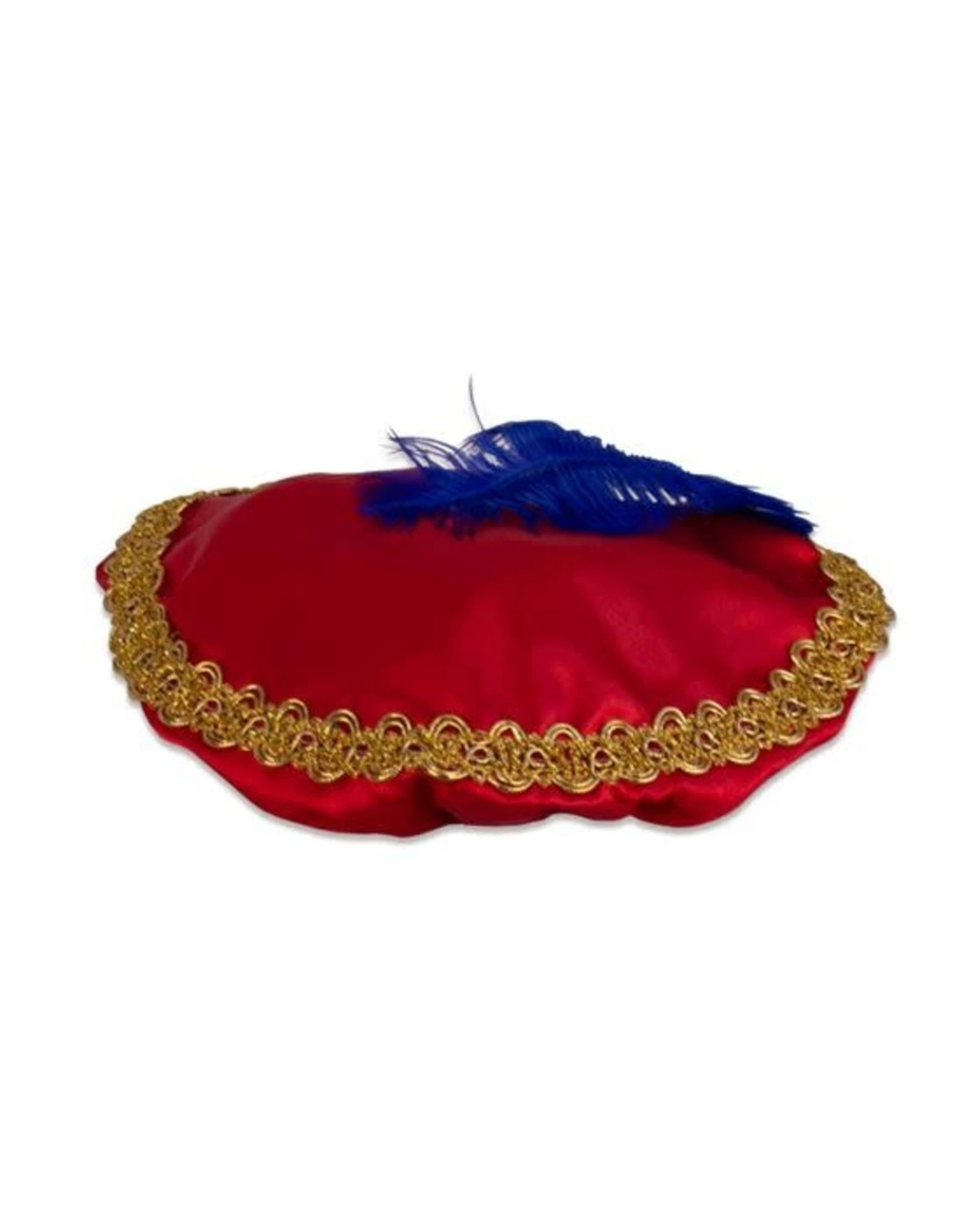 Pietbaret Satijn Met Veer Rood
