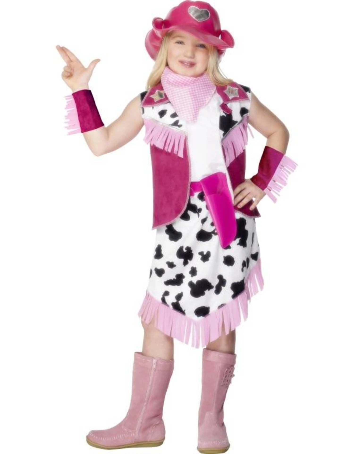 Dit kostuum bestaat uit een rok, vest, sjaaltje, armstukken, pistoolhouder en hoed.