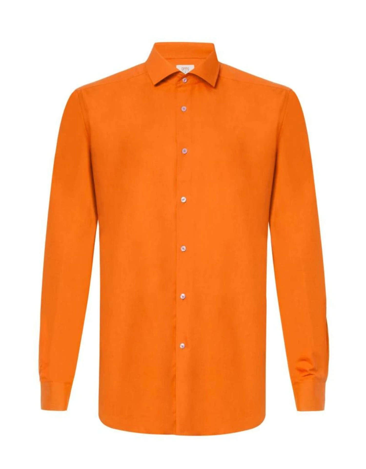 Heb je jouw ideale pak gevonden, maar ben je nog op zoek naar een overhemd dat er mooi bij past? Dit opvallende oranje overhemd is er eentje voor mensen die ervan houden om in de spotlight te staan. Bovendien blijkt uit onderzoek dat oranje vaak geassocieerd wordt met lol, energie en smaak. Dus als je jezelf daarin herkent, is dit oranje overhemd voor heren waarschijnlijk echt iets voor jou. Hij is speciaal ontworpen om met een pak te dragen, wat betekent dat hij lang genoeg is om in je pantalon te stoppen en erin blijft terwijl jij aan het dansen bent op je volgende gelegenheid.