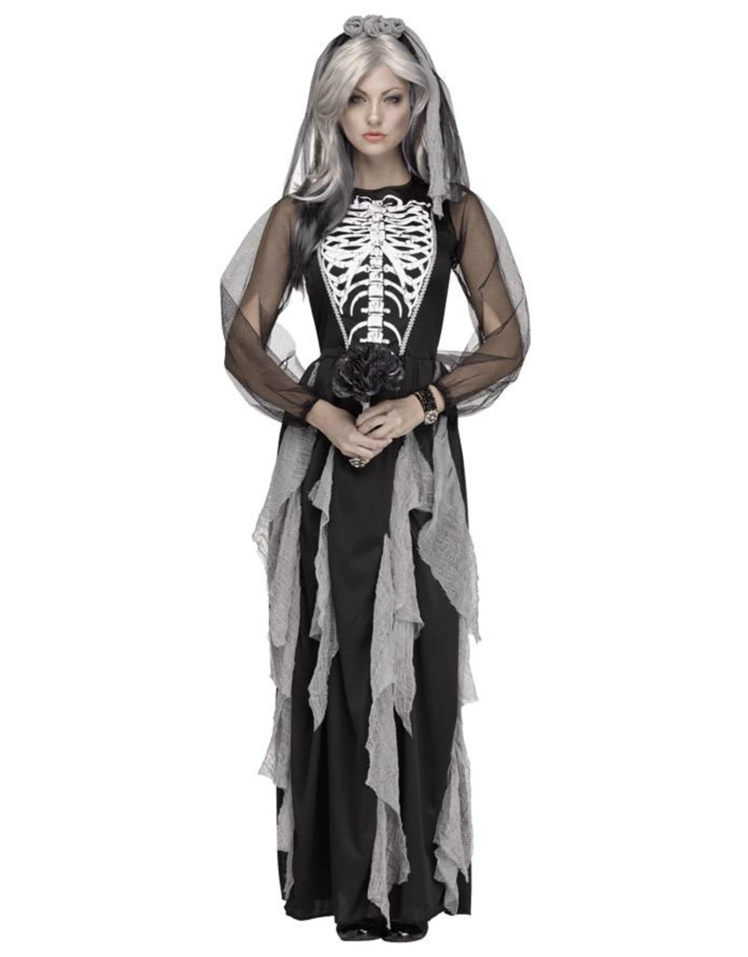 Dit kostuum bestaat uit een lange jurk met sluier op klem.
