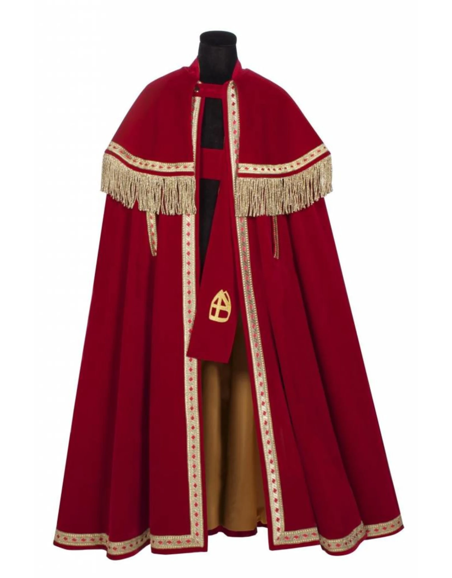 Dit kostuum bestaat uit een rode mantel met stola. (TV-Sint)
