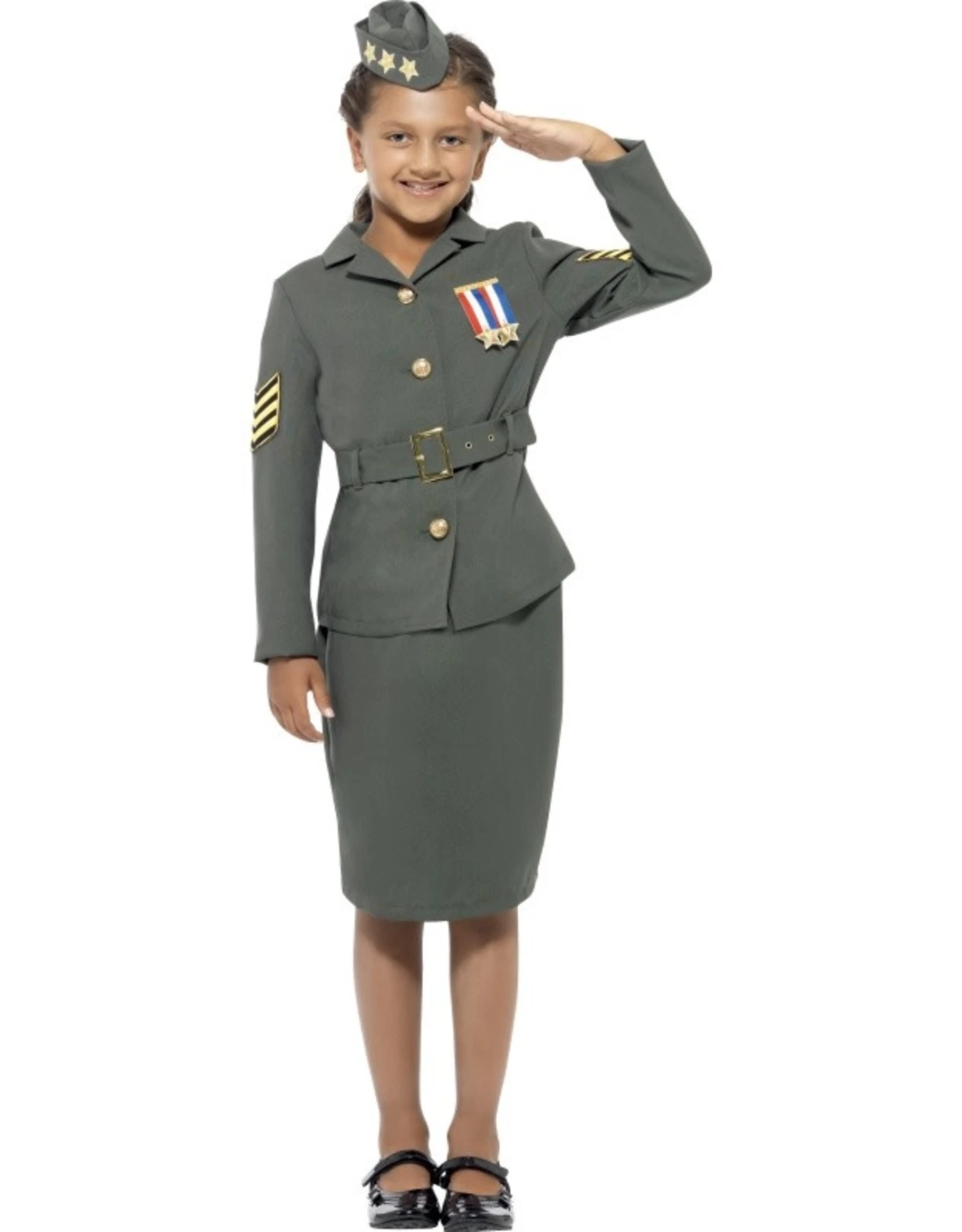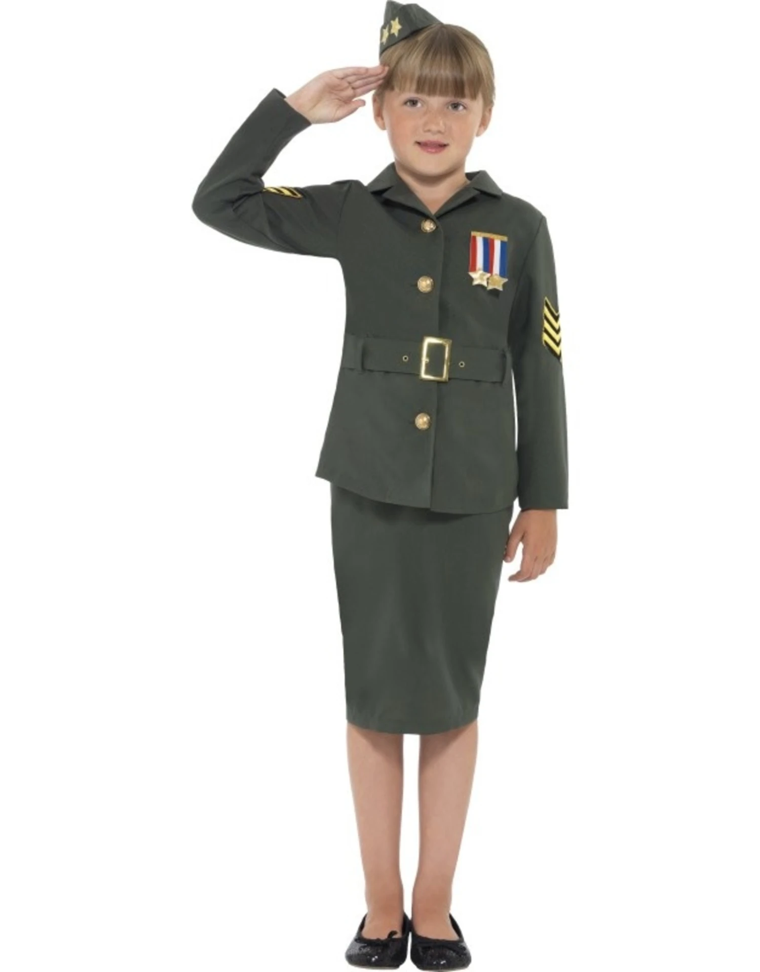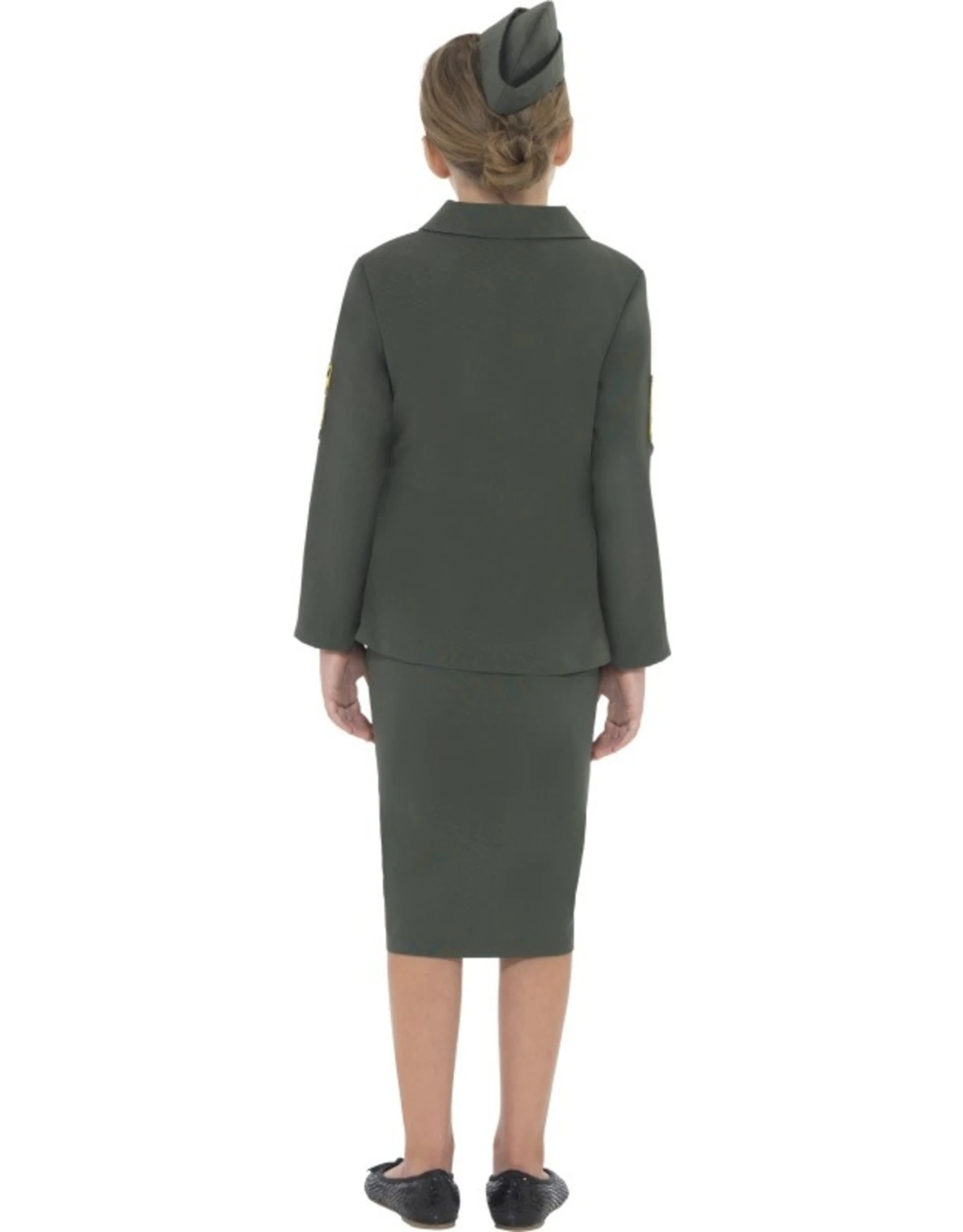 Dit kostuum bestaat uit een jas, rok, aangehechte riem en baret